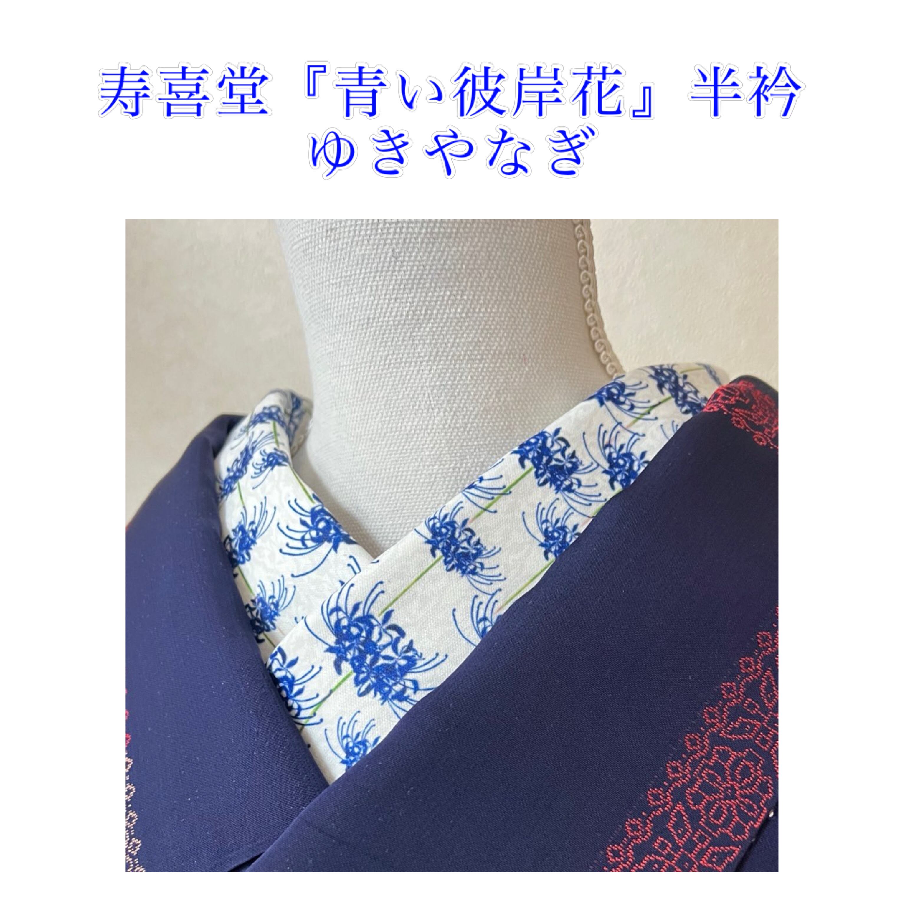 言わずと知れた誰かの青春の1ページを支配・または鮮やかに彩った青い薔薇の半衿です。思想的な意味はありませんがずっと探していた方に是非。