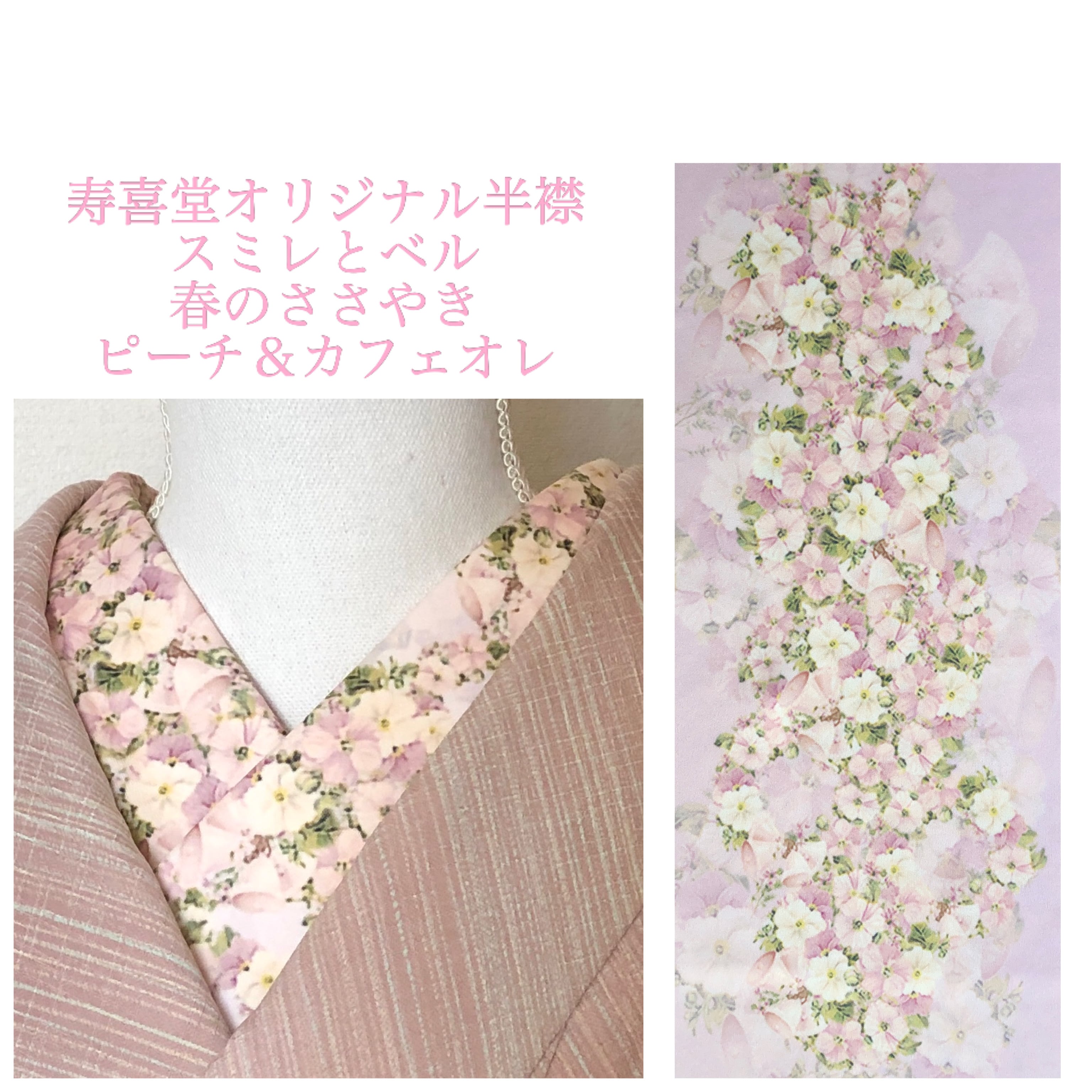 寿喜堂オリジナル半襟「スミレとベル」ピーチ&ラベンダー