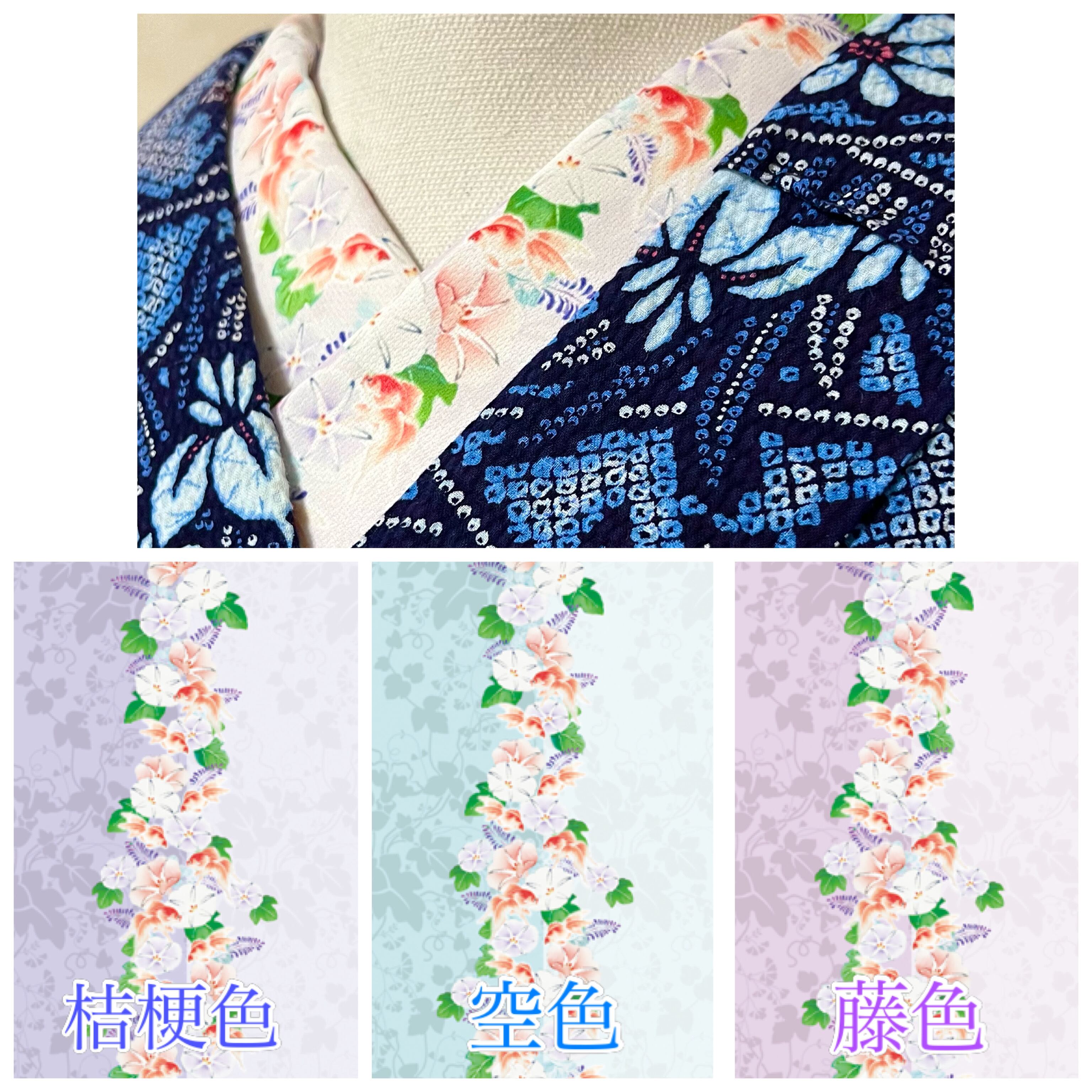 寿喜堂オリジナル夏の半襟【金魚と朝顔】3色